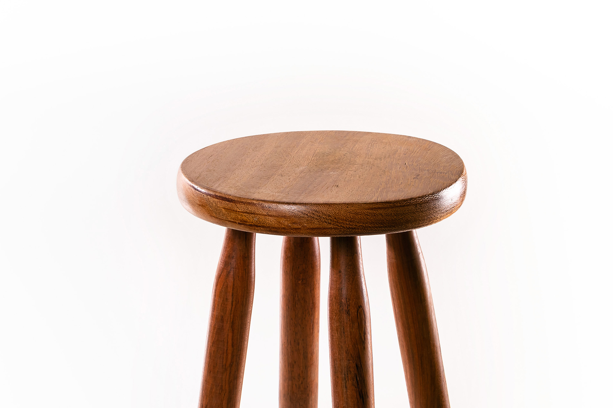 A TRADICIONAL BANQUETA DE MADEIRA COM ACENTO REDONDO UTILIZADA EM BARES E ÁREAS GOURMET DAS CASAS PARA OS DIAS DE CHURRASCO.