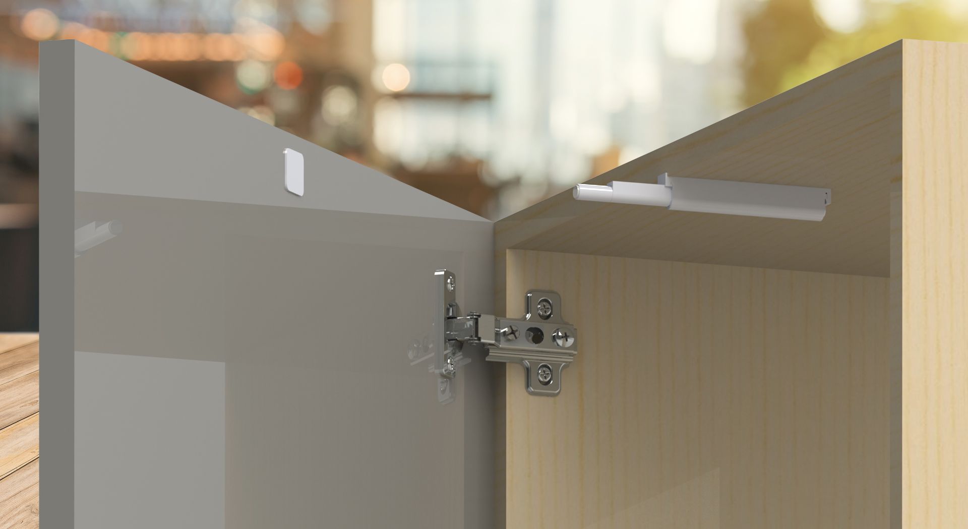 O Pulsador é um dispositivo para abertura automática de portas e gavetas com sistema magnético, sendo assim não necessita de puxador na porta, dando mais leveza no móvel.